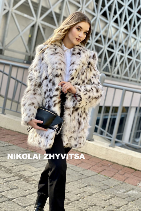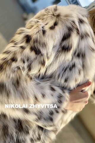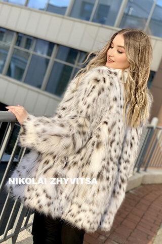 Полупальто из меха рыси с частыми вкраплениями черных пятен⠀